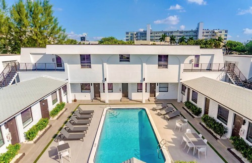 You'll love your pool-view studio with a queen bed where you can run many daily errands by foot, relax by the heated pool just outside, or walk 482 feet to the beach. Take a 10-minute walk to the Deerfield Pier where you'll find a vibrant nightlife, fine dining, and shopping! Your studio is only a 10 min. drive to downtown Boca Brightline Bullet Train, US1, I-95, and 35 minutes away from PBI Airport. After booking, every guest is sent our online guidebook to plan their stay. Hi-speed WiFi.