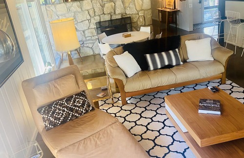 This home is a midcentury mod Donald Drummond entertainers dream with a little midcentury and a little modern design on a quiet street that will make you feel like your staying in California. The house has an Open floor plan with wall of windows - no need to shut the curtains in any room 180 degree full privacy from all neighbors, 6 sliding glass doors, polished concrete floors great for pets, brand new renovated office space full of light a monitor with both seated and standing desks, private backyard with fully 6ft fenced in yard, 4 outdoor seating areas, 2 living areas, formal dining with china if you having a fancy dinner, 3 beds with 2 queen and 1 King, a Full couch pull out bed in 2nd living are for up to 2 additional guests, internet, smart tv/apps (Hulu, Netflix, HBO, Showtime, Disney+, and 200+ channels on Cable). Outdoor amenities include: huge backyard, garden with lots of birds, grill, firepit, TV, lounge seating, dining table, umbrella, water fountain, 2 vintage bicycles, And a Pool - Above ground intex 12’ diameter 36” height - have a number of floats/rafts for guest use.