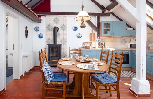 3-room semi-detached house 80 m2, on the ground floor. Cosy furnishings: open large living/dining room 45 m2 with satellite TV (flat screen), radio and CD-player. 1 room 9 m2 with 1 french bed. 1 room 10 m2 with 2 beds. Kitchenette (oven, toaster, kettle, electric coffee machine). Shower/WC. Terrace. Terrace furniture, box-room. Facilities: washing machine, children's high chair (extra), hair dryer. Internet (WiFi, free). Please note: non-smoking house. Maximum 1 pet/ dog allowed. Smoke alarm. Without dropped ceiling. The original exposed beams were lovingly restored. Nice view of the countryside and the North Sea dyke.