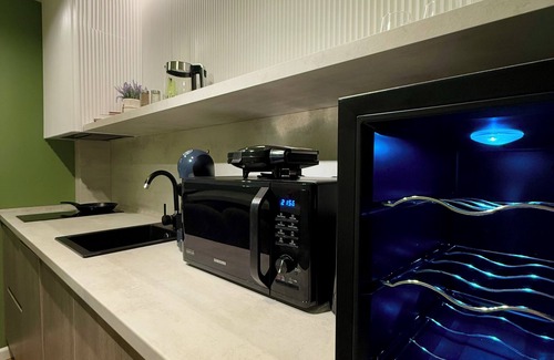 • Kitchen → Fully equipped with all the essentials: a coffee maker, wine cooler, toaster, microwave, stovetop, oven, fridge, and a complete set of dishes, cutlery, and glassware for cooking and dining convenience.