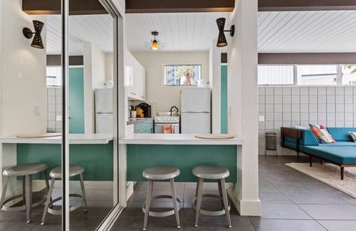 Enjoy the best that Palm Springs has to offer at our light & airy mid-century bungalow. Located in the historical Ocotillo Lodge, our colorful, stunning unit is distinguished by its large private patio and open layout. Meticulous details & whimsical elements have been added to complement the surrounding desert landscape. Enjoy modern amenities and the comforts of home, all while taking in the many stylized nods to Palm Springs' colorful history. Our mid-century jewel box is yours to enjoy!