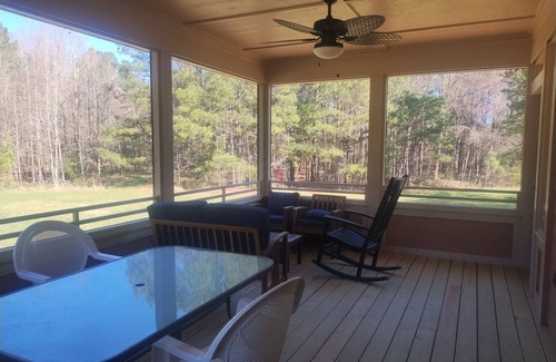 Jo Mac pond-side retreat is located in Chapel Hill. Jo Mac pond-side retreat provides accommodation, featuring Air Conditioner, Pet Friendly, TV, among other amenities. This House features Air Conditioner, Pet Friendly, TV, to make your stay a comfortable one.