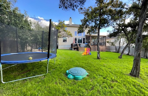 Our home is a warm, cozy, inviting family home with a wonderful large backyard for kids and dogs. The backyard has a private pool, hammock, trampoline, lots of yard/grass space, screened in porch, kids water table, sandbox and outdoor deck with table for 7 people and big green egg.