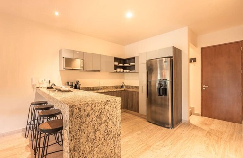 Jungle Jade is the perfect place for your next trip to Tulum. This well appointed apartment features 3 bedrooms, 3.5 bathrooms, private terrace and rooftop with plenty of room for everyone! The lush common pool feels like you are deep in the Jungle. Ideally located in Aldea Zama - walk to restaurants, shopping, groceries - everything is close! A few minutes to the beach by car- our guests receive access to Gitano, Ahau and Soy Tulum Beach Clubs. Grocery delivery private chef available!