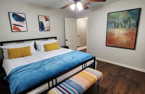 Have fun with the whole family at this stylish home away from home! Our house is perfect for your family traveling to DFW. We are minutes away from Six Flags, Hurricane Harbor, Cowboy Stadium, Globe Life Field (home of the Texas Rangers), Epic Waters. We are a short drive from Downtown Dallas and the Ft. Worth Stockyards.