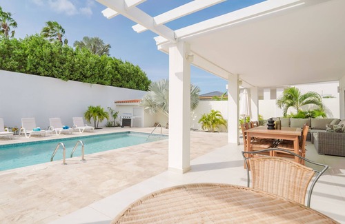 Welcome to our centrally located vacation villa in Noord, perfect for your next getaway. This four-bedroom, two-bathroom villa is designed to accommodate families and groups seeking a peaceful retreat. The fully equipped kitchen, cozy living spaces, and ample outdoor areas ensure a comfortable stay. Relax by the private pool, enjoy meals on the patio, or explore the island’s top attractions just a short drive away.