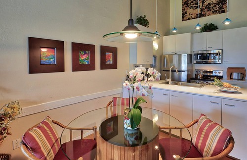 Our condo has been extensively renovated and modernized! Gleaming bamboo floors throughout our condo luxuriously complement new and tropically themed furniture. Elegant plantation shutters have been newly installed in both bedrooms. The walls are adorned with stunning pieces of art. The sofa couch in the living room opens to a queen-sized bed with a super comfortable memory foam mattress. The main floor bedroom contains a comfortable king bed and has plentiful storage. Upstairs, the private master bedroom is furnished with a king bed furniture suite and its own ensuite bathroom.