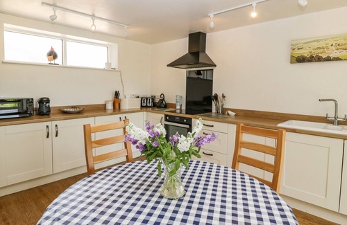 This detached barn conversion has a kitchen/diner with an electric oven and hob, microwave, fridge/freezer, washer/dryer, dishwasher, coffee machine, and seating for four guests, and a sitting room with a Smart TV and woodburning stove. The bedrooms consist of a king-size with TV and en-suite bathroom, and a twin with TV and en-suite cloakroom, along with a ground-floor shower room. Outside, there is an enclosed garden with furniture and barbecue, and off-road parking. Within 2.3 miles, there is a shop, and within 1.9, a pub. Please note, this is a non-smoking property. One dog is welcome - There is a £25 charge per dog, payable to the owner upon arrival; Due to being on a farm, only well behaved and non aggressive dogs are allowed and the property does not accept dogs over 25kg or certain breeds - please enquire. WiFi, fuel, power, bed linen and towels are all included in the price. Children must be supervised at all times around the lakes and grounds. Fishing must be booked through the owner and charges apply and the boat is only available during the summer season (conditions permitting). Kelpers Barn offers families, couples, and friends alike a country retreat in Dorset.