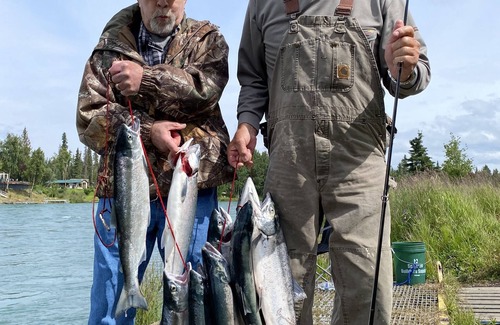 This is a beautiful new home on the Kenai River, just a few miles from downtown Soldotna and located on Funny River Road. Great neighborhood, private access to fishing, or a mile of public use fishing just down the road. A freezer is provided. Your host, Mark, is most always on-site and enjoys teaching those who may not be familiar with fishing our river how to catch a big one! Master bedroom has a King and second bedroom has two twin-sized beds.