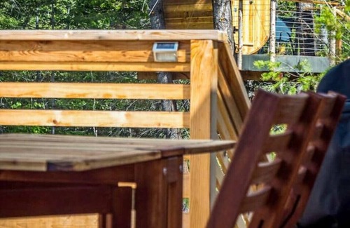 A great basecamp for your mountain adventures. Soak in the mountain views from the hot tub, zen out in the treehouse sauna, chill on the big deck or stay cozy inside this modern, fully equipped tiny home.