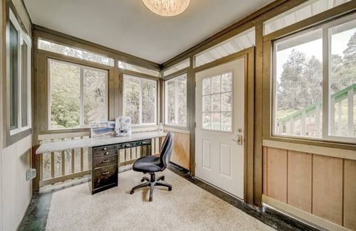 The home features 2 comfortable bedrooms, 2 bathrooms, and a versatile loft space, making it perfect for couples, families, or a small group of friends. A full kitchen provides everything you need to prepare meals, while the warm glow of the gas fireplace invites you to unwind after a day of exploring. Step outside to the spacious lanai and enjoy your morning coffee in complete privacy, accompanied by birdsong and the cool mountain air.