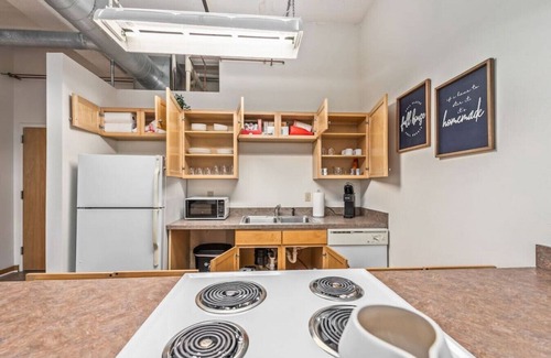 This stylish apartment is the perfect place to call home on your next Kansas City vacation. It features soaring ceilings, a stunning bedroom, a full kitchen, and access to a pool, hot tub, gym, free Wi-Fi, and parking. Enjoy the central location - you can walk to the best restaurants, the Power and Light District, and other great spots!