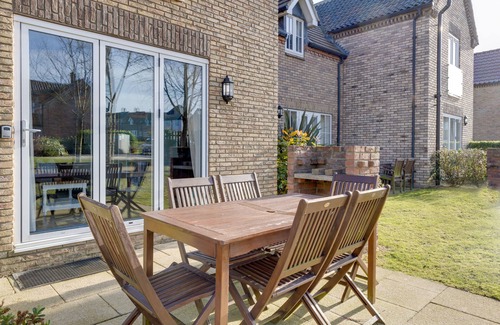 A log burner and a selection of books, games and DVD's makes it enjoyable to stay in. The bi-fold doors open onto a sunny terrace with bbq and patio furniture.