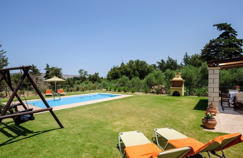 The villa is built on a 500sq.m field, part of a 5500sq.m private property. In this property there is also a fenced area where a stable, a kraal and a hennery are found. After consultation with the owner you can ride the horses for an excursion at the surrounding area. The garden of the villa is covered with grass and around the private pool there are sunbeds for your sunbath.