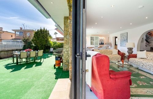 Welcome to 5StarsHome, the leading vacation rental company in Mallorca and Ibiza. Discover the unique experience of staying at Korablue, a spectacular vacation home located in Playas de Muro, Mallorca. This is the perfect place for those seeking luxury, comfort, and an unbeatable location near the island's best beaches. Don't miss the opportunity to enjoy an unforgettable vacation in this Mediterranean paradise!Korablue is an impressive 300 m² house, designed to comfortably accommodate up to six people. It features three elegant bedrooms, including a master bedroom with a double bed, a second bedroom with two single beds, and a third bedroom with with two single beds. There are three modern bathrooms, each with a shower and light-toned finishes that provide a spa-like feel.The living room is spacious and bright, with large windows that allow natural light to enter and offer views of the beautiful garden. Here, guests can relax on comfortable sofas while enjoying the modern decor, which includes contemporary art and unique details such as a vintage motorcycle mounted on the wall. The dining area, integrated into the same space, features a light wood table and designer chairs. The kitchen, fully equipped with appliances and spacious granite countertops, is a dream for any cooking enthusiast.Located in the municipality of Playas de Muro, Korablue offers a privileged location. Just steps from the house is one of Mallorca's most famous and beautiful beaches, known for its crystal-clear waters and white sands. Here, visitors can enjoy a variety of water activities, from snorkeling to paddle surfing. The area also boasts numerous restaurants, bars, and shops that offer an authentic Mallorcan experience. Additionally, the proximity to the S'Albufera Nature Reserve makes this house an ideal starting point for excursions and bird watching.At 5StarsHome, we are committed to offering you the best vacation experiences. Don't miss the opportunity to stay at Korablue, where every detail is designed to offer you a perfect holiday. Book now and start creating unforgettable memories in Mallorca!"This property is currently waiting for permission to build a pool on the front terrace. The work would either take place in winter 2025, or winter 2026. Due to the planned changes, exterior areas may differ from the photos shown at the time of creating the booking. There will be no additional costs added to your stay if the pool is constructed after your booking is made."