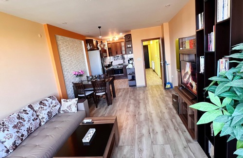 Welcome! Settle in! Feel at home! Apartment Krissty is new build, colorful and cozy! We have tried to give the apartment the comfort of "feeling at home", and not the appearance of a typical white, boring, hotel room. It consists of a bright, spacious living room with a large kitchen, a large bathroom, a separate bedroom in great colors , a large entrance hall and a balcony. The kitchen is furnished with everything you need for your stay - utensils, dishes, both for a pleasant dinner and for its preparation, top class electrical appliances, coffee machine, refrigerator with freezer. It has two SMART TVs with cable TV, air conditioners in every room and fast internet. It has washer and dryer room too. We have a neat library available to our guests with many new as well as old, rare book titles. As a compliment to each of our guests, a decorative jar with homemade honey from our bee farm will be provided as well as different tea and coffee to chose from. From our small balcony there is a beautiful view of the nearby park with many coffees and restaurants . Mall Veliko Turnovo is about 5 minutes walking.