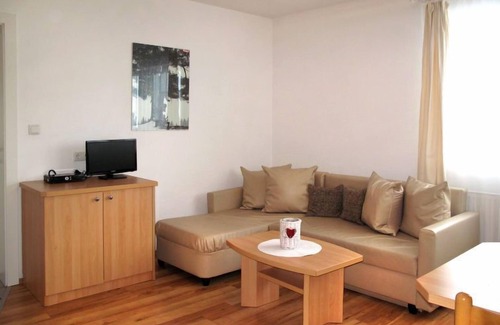 "Kristall", 2-room apartment 45 m2, on the ground floor, south-west facing position. Object suitable for 2 adults + 2 children. Bright, beautiful furnishings: living/sleeping room with 1 double sofabed, dining table, satellite TV and radio. 1 double bedroom with shower/WC. Open kitchen (4 hot plates, oven, dishwasher, toaster, kettle, microwave, electric coffee machine). Gas heating. Facilities: Internet (WiFi, free). Please note: smoke alarm.