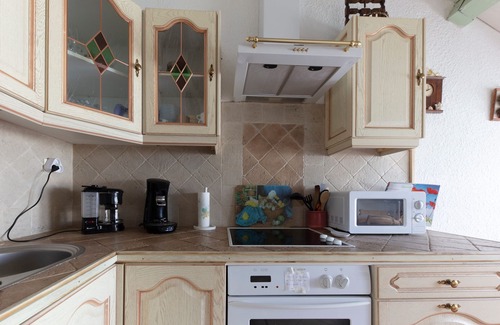 - An open kitchen equipped with electric kettle, toaster, kettle, oven, microwave oven, hotplates, Senseo coffee machine...