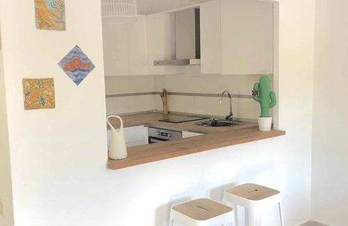 The house is located in a privileged place, in a quiet and central area of the town of Rodalquilar, next to a palm grove. It has two bedrooms, a living room with kitchen, a bathroom, a large shower, an exterior patio, an interior patio and a large solarium on the top floor with beautiful views of the Rodalquilar valley. The house is newly renovated and furnished.