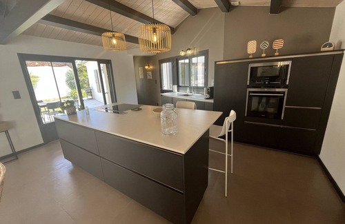 The Villa of the VinesLa Centrale of Ile de Ré offers you this magnificent recent villa in Rivedoux-Plage with SPA, accommodating up to 6 people.Ideally located, the village of Rivedoux-Plage has all amenities and is situated 20 minutes from La Rochelle.This high-end villa of 135m2 is located near shops and the market (300 metres away) and close to the beach (600 metres away) and the popular local bar Ré Glisse.The villa was designed and decorated in a family spirit, ideally suited to one or two couples with children. Located on a 400m2 plot, it features a pleasant spa and a shaded terrace.This beautiful single-storey villa is functional, comfortable and features carefully designed decor.OUTSIDEThe villa has an embedded spa, a shaded terrace and 2 terraces leading to 2 of the bedrooms.The house has 2 secure private parking spaces.INSIDE1 spacious living/dining room with 1 fully equipped open kitchen, 1 dining area and a large lounge.Bedroom 1 consisting of 1 double bed 160x200cm.Bedroom 2 consisting of 1 double bed 160x200cm.Bedroom 3 consisting of 1 double bed 160x200cm.3 shower rooms including shower and washbasin.2 toilets.1 utility room with a washing machine.The house is non-smoking.Pets are not allowed.The house is not suitable for people with reduced mobility.Stag or hen parties are prohibited.Our local team is delighted to welcome you to the beautiful Île de Ré! Île de Ré offers a particularly pleasant living environment for holidays with one of the highest sunshine rates in France. Almost everything can be done by bike and on foot, and the sea and beaches are always nearby on our small island that is 30 kilometres long. Passionate about history, summer activities and gastronomy, art and decoration, we are happy to help you enjoy a quality stay in our home.Upon your arrival, in addition to our welcome kit, we will provide you with a welcome guide with tips and our advice for discovering the Island of Ré in the best possible conditions!The house is open for booking from 5 days of rental outside the summer period and from 7 days during the summer period (July and August)SERVICES INCLUDED:The end-of-stay interview is included.The rental and delivery of household linen for beds and bathrooms are included in July and August (and optional outside July and August).The key handover and house presentation directly on site are included.The security deposit of an amount of £2,000 is mandatory before entering the premises (by pre-authorisation of bank card or bank transfer).