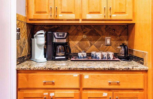 Fully stocked gourmet kitchen: 3 ovens, 2 fridges, coffee bar