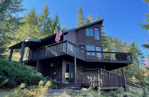 Welcome to the Eagle's Nest! A private lake cabin retreat that is perched up in the trees with tremendous lake views and a direct view to downtown CDA. Enjoy a spectacular bird's eye view of the fireworks over the lake on 4th of July! Enjoy a game of pickleball and a soak in the hot tub after a fun day on the lake. This home has 3 bedrooms and 2.5 bathrooms on nearly an acre of pine trees, maple trees and aspens. The architectural design of this home allows for epic views and many comfortable spots in an inviting living space and two large outdoor decks. The home has brand new memory foam beds and linens, wifi and 2 smart TV's, many games including chess and an old classic poker table. Enjoy the hiking, boating, fishing and adventures of North Idaho in this comfortable retreat.