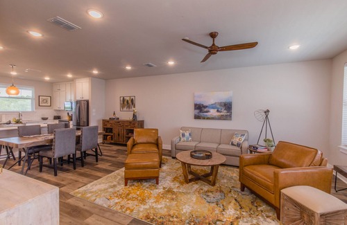 Lakefront Resort style luxury condominium featuring pool, hot tub, gas fire pit, exercise room, free laundry. There's more, a pool side pavilion with 2 gas grills, big screen TV, Pavillion withtables and chairs, and restroom/changing room. Built in 2020 there are only 15 luxury units all 2 bd/2ba with balcony and over 1200sf. Gated parking lot with elevator to our second floor unit. All furnishing in our unit are new as of April 2021. Knock-out views from our balcony with seating for 5. Sleeps 8.