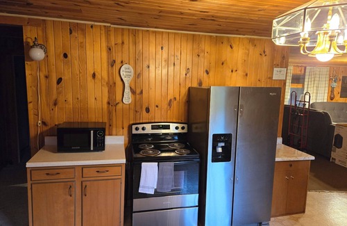 Quaint and cozy in-law suite attached to a nice lake property. No dock currently but boat ramp is less than 1/4 mile. Fully furnished with all new furniture and bedding ready for your stay. Pet friendly. Snowmobile friendly area. Enjoy a fire in the fire pit by the lake with family and friends. Very large living room with 2 full size futon beds, free WiFi and smart tv so bring your favorite apps. Master bedroom has a queen bed and smart tv. Large kitchen/dining room area with everything you'll need to prepare and enjoy a good meal. Enjoy a cook out if you want to bring a grill or use the charcoal grill on the property. Large yard space for a small get together if desired. lots of parking and if your staying during the winter a garage space can be purchased for the duration on your stay. Laundry service also available on site. We wash, dry, and fold your laundry for a $15 fee per load. Access to free use of the sauna located one mile from the lakehouse property at our hotel.