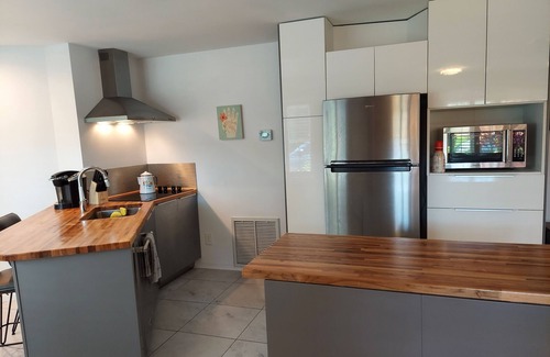 This is a 1 Bed 1 Bath property with Bed: 1 King Bed & Living Room: 1 Queen Pullout Couch. Fully equipped kitchenette, & Laundry room with Washer/Dryer.