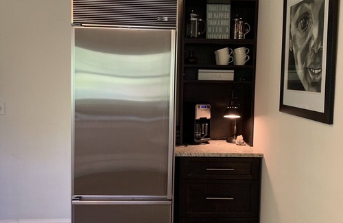 The deck has seating for relaxing and a table and chairs for dining. Entertaining while cooking on the grill is conveniently next to the kitchen.