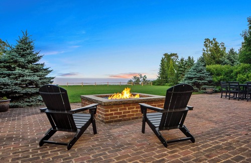 Set your sights on this lakefront paradise in Newton! The impressive 5-bed, 4.5-bath home offers plenty of room for your crew to unwind, including a gourmet kitchen, multiple living areas, and a furnished patio — perfect for hosting BBQs or watching the sunset fireside. After visiting the Farm Wisconsin Discovery Center with the kids, retreat to this vacation rental for a fun-filled game night!