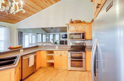 Nestled in the heart of Sparta and mere steps from the tranquil shores of Lake Sinclair, this 3-bedroom, 2-bath vacation rental home is ideal for relaxation and water-based adventures. Feed the pet catfish, spot deer, or enjoy the flat yard leading to the water. For more adventure, trek through Hamburg State Park. As evening falls, gather around the fire and watch the sky ignite with a stunning sunset.