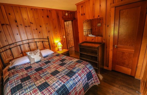The Sunfish Cabin overlooks the swim area and open grassy area next to the Musky House. Bedroom 1 has a queen bed, Bedroom 2 has 2 twin beds to sleep up to 4. There is enough parking space in front for two cars or one truck with trailer.
