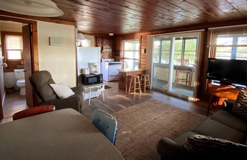 Quiet Lakefront Cabin resort on Clam Lake. Cabins are 50 feet from the shoreline providing incredible views. Clam Lake is part of a chain of lakes that connect to Torch Lake, Lake Bellaire & Grass River Natural Area. Just 10 mins away from Shorts Brewery in charming downtown Bellaire and Glacial Hills Nature trails. Enjoy our lakeside fire pit, cozy wooden swings, and roped off sandy bottom swimming area. Help yourself to free use of kayaks, row boats, and docks.