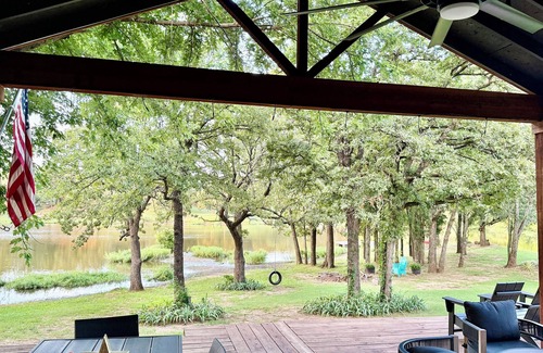 Unwind under the stars lakeside and enjoy the fire pit or enjoy a game of cornhole with our custom Edgewood cornhole boards. Outdoor activities `galore await you! Swimming, boating, fishing, hiking, biking..... there is fun for everyone! We have beautiful hiking trails and spring fed pools throughout the Chickasaw National Recreational Area, Oklahoma's largest waterfall, Turner Falls, Live animal exhibits at The Travertine Nature Center, the Arbuckle Wilderness Park, a drive-through Safari where you can see hundreds of exotic animals and feed them from your car. Love ATV's? Visit Cross Bar Ranch for 6,500 acres of rocks, trails, and fields to explore. The Chickasaw Cultural Center offers performances, reenactments, demonstrations, and exhibits at one of the largest and most extensive tribal cultural centers in the USA. You don't want to miss this! Edgewood Lakehouse is a short 2-minute drive from the Chickasaw National Park public boat ramp on Lake of the Arbuckles (we have boat parking as well!) and just a few minutes drive to all of the local attractions.