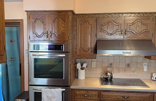 Home is fully equipped with everything you need to cook for a large group including a double convection oven, cooktop, microwave, dishwasher, and full size refrigerator. Kitchen has a coffee maker, Keurig machine with Frother and K-Cup Pods. Essentials provided include basic spices, paper products, trash bags, dishwasher pods, laundry detergent, and firewood. All bathrooms are stocked with soaps, shampoo, conditioner, towels of all types.