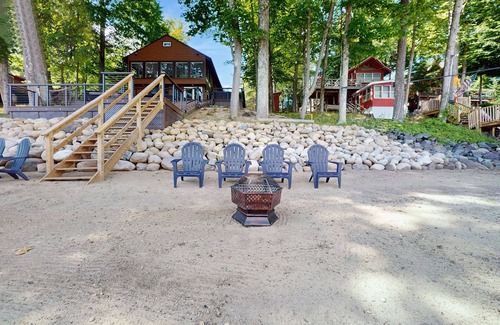 Note: Use of the private beach and dock is shared with the cottage on the property. There may be guests staying in the cottage. Kayaks, fishing poles, paddle boards, beach gear, landings, firepits, etc are first come, first serve and shared as well.