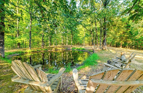 OUTDOOR LIVING: Wraparound deck, screened porch, patio w/ picnic tables, gas grill, johnboat & kayaks, boathouse w/ fishing poles & life jackets, 26 acres w/ private lake, swim beach & hiking trails, hot tub, kids' treehouse, horseshoes, canoes, fountain