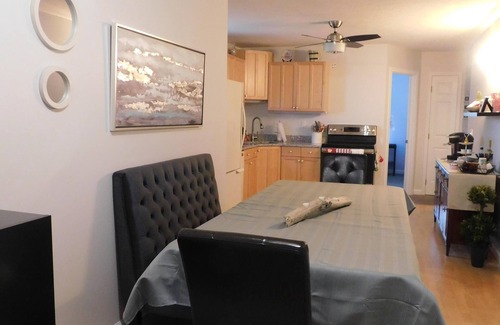This is a very clean, fully furnished house that sleeps 6 people downstairs and 8 people upstairs. At one time it was actually two separate units as the upstairs has its own great room and full kitchen. In addition, the upstairs has 2 bedrooms and a sleeping porch. The downstairs unit also has 2 bedrooms, living room, dining room, kitchen, bathroom, enclosed front porch, and laundry room.
