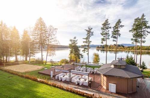 Child friendly, modern resort "Lakeside Village". 45 houses in the resort. 10 apartments in the residence. Outside the resort, in a quiet, sunny position, on the lake. For shared use: property. Private beach, beach volleyball, barbecue, fireplace, children's playground. In the complex: reception, bar, bistro, sauna, fitness room, massage, hot tub (all extra), kiosk, bicycles available bicycle rental. Available: boat (extra). Bread roll service and breakfast on request. In Winter: please take snow chains. Parking at the house. E-charging station. Bathing lake "Lipno". Riding stable 500 m, ice rink 11 km. Nearby attractions: Aquaworld, Marina Lipno, Bobová dráha, Lanový park, Bikepark (Lipno) 15 km, Český Krumlov (UNESCO) 35 km. Well-known ski regions can easily be reached: Frymburk 5 km, Kramolin 15 km, Sternstein 25 km, Hochficht, Sterngartl 40 km. Hiking paths: Stezka korunami stromů (Lipno) 15 km. Please note: baby equipment on request (extra). Fishing [permit required], private mooring. All houses/apartments are individually designed/furnished.