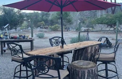The outdoor table and porch benches are exclusive to the Casita. You are welcome to use the firepit, gather kindling, access the solar water purification system and explore the entire property. Tillie Creek runs through the back of the property and is where deer and other critters pass through. (The creek runs seasonally but is expected to flow into the summer months.)