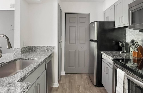 Set in Nashville’s charming West End, The Metropolitan puts you near Percy Warner Park trails, Green Hills shopping, and Belle Meade’s historic beauty, all just minutes from Music City’s vibrant core. Perfect for flexible stays, our apartments feature full kitchens with granite countertops, stainless steel appliances, and open-concept layouts. Recharge by the resort-style pool, hit the 24-hour gym, or enjoy the leash-free pet park and on-site walking trails.