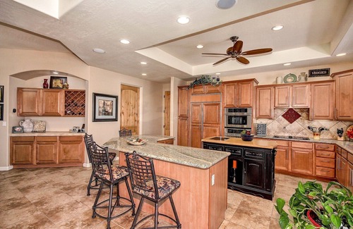 There are two bedrooms on the first floor with an adjoining Jack n Jill full bathroom. The incredible master suite is upstairs plus a loft. The game room and wet bar are on the lower level. From formal dining for eight to casual dining out on the patio to the extra large breakfast far in the kitchen. There is a large desk in the rec room for business travelers. Owner keeps a separate office on the property should you need any printing, faxing or scanning.
