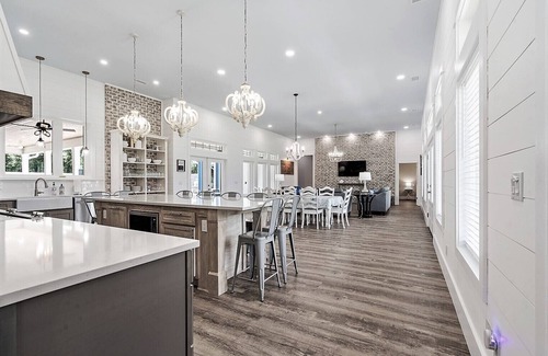 Built specifically for large group vacations with up to 20 people at 4,817 sq. ft with 1,217 sq. ft. of covered porches, this BRAND NEW in March 2023 home is luxurious, spacious and well appointed. Loads of Amenities - Private Pool, Spa, Large Covered Patio with Cooking area, Polywood Furniture for dining, lounging, rocking, TV, Turf areas with Bean Bag Toss and Hammocks, String Lights, Landscaping, Privacy Fence.
