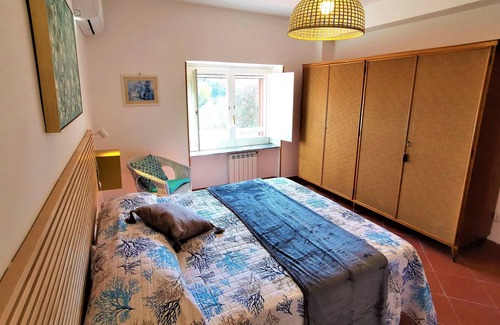 Large panoramic villa with garden, comprising five bedrooms, two living rooms with two double sofa beds, five bathrooms, two kitchens, three patios with chairs and tables, (two covered and one uncovered), private panoramic garden with centenary oaks, equipped with chairs and sofas. The villa is surrounded by olive groves and vineyards. The beaches are 3 kilometres away. This elegant accommodation is perfect for group travel.