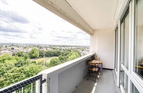 Welcome to our beautiful and large F5 apartment of 80 m2 with a superb view 🌉 from the 9th floor (with elevator). The flat is fully furnished, equipped and secure. Less than 5’ walk from the public transport Tram T4 station «Rougemont Chanteloup» our apartment is close to many activity area by public transport: