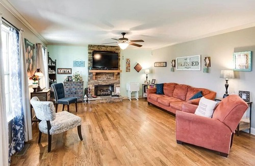 Beautiful new home in quiet neighborhood out of town. Huge 200 sq ft bedroom with large walk in closet. Get a good day or nights sleep with black out curtains. Full kitchen access with oven, range, microwave, and convection oven, as well as full laundry access with all detergents/bleach included. Sit on the back deck under the gazebo, and enjoy the firepit, BBQ grill, or Chimenea. Small town charm, but plenty of nightlife, great restaurants, festivals, and outdoor activities. We are next to the mountains, so the view from your upstairs room is magnificent:) The wife and I are both RN's of at least 30 years, and know full well what we face. Be happy to share some local healthcare inside knowledge. We would love to have you rest at our place.