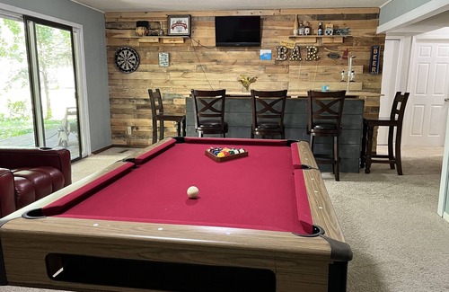 Beautiful and private open spacious two level 5 bedroom, 3 bathroom house with a large basement and yard, equipped for all your needs! Your home away from home! Perfect for a fun night out with friends! Enjoy a game of pool, darts, or just a movie on a large screen! Sit and play games at the bar, while enjoying a drink. Or warm up around the fire outside in a huge wooded yard! Everything is available for your use: appliances, kitchenware, towels, etc. Pet friendly home! We only ask that you’d treat things as you would in your own home and clean up after yourselves! Close to entertainment and food, only 15 mins away from the downtown Mpls! If you have any questions, please, feel free to ask! Perfect home for a group of friends or a family!