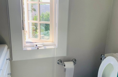 Stay at a Tudor home with a lovely backyard, ample bedrooms and common spaces. Multiple reading nooks.