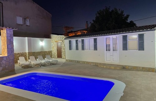 Complex consisting of a bungalow and an apartment, all rented together, with capacity for 12 people. With an outdoor area, private pool, sun loungers, barbecue, patio.